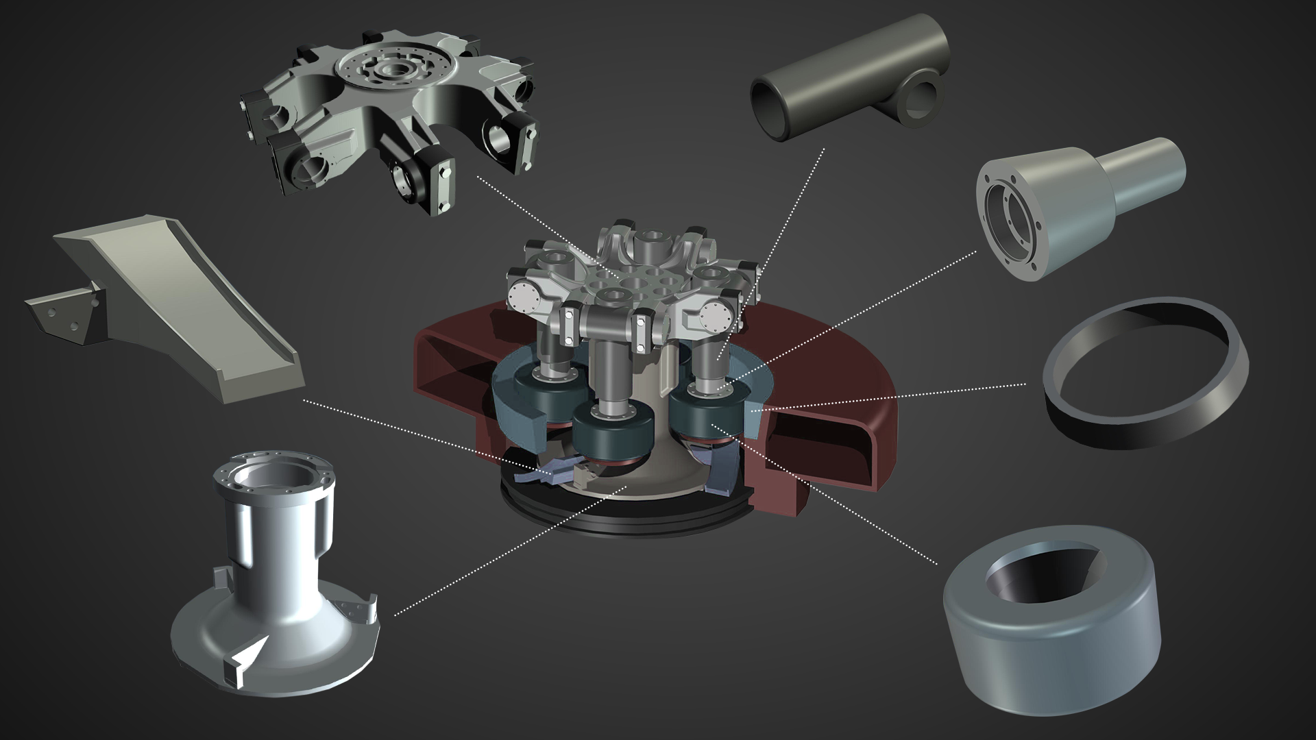 Göbekler, akslar, dişliler, dişliler, zincirler, kasnaklar, vinç tekerlekleri ve kancalar vs.